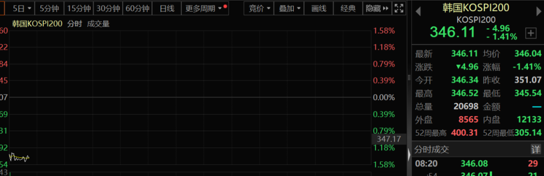 韩国市场亦是全线杀跌,韩国KOSPI200指数杀跌近1.5%。昨天,虽然韩国与朝鲜局势紧张,但韩国股市依然顽强收红。但随着夜间美股杀跌,韩国市场却迎来大调整。从结构上看,亦是半导体主导了跌势,SK海力士跌4.7%,三星电子跌2.7%。
