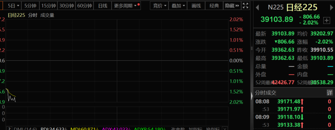 今天早盘,日本股市大幅低开1%以上,随后跌幅又扩大至2%以上水平,一举打破了最近以来的持续强势。从昨天晚上的美股行情来看,日本股市的走势是美股的延续。