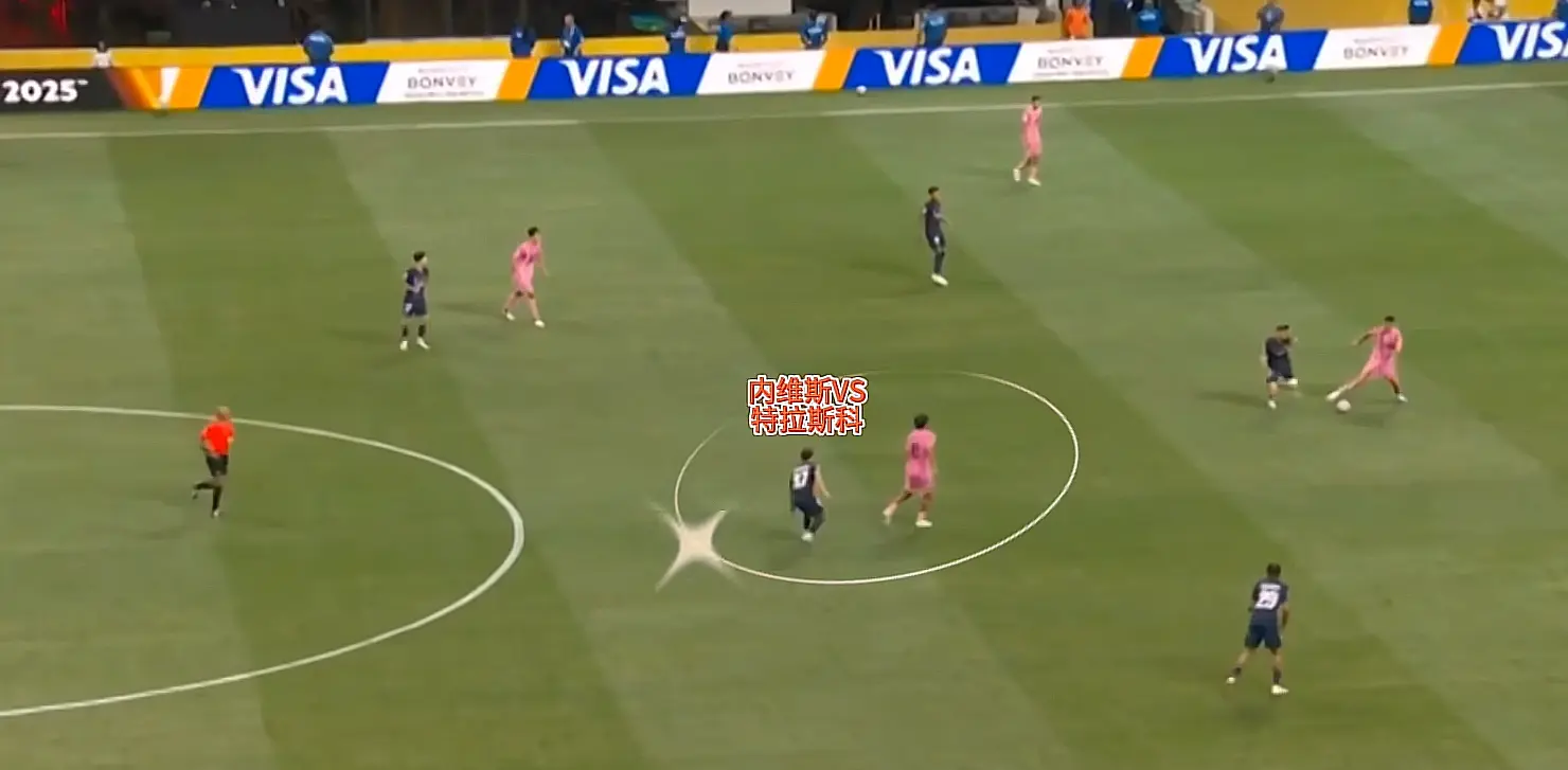 包括说巴黎的第二个进球,同样是内维斯提前预判,站在了迈阿密中场接应点特拉斯科的身后,使得对方不敢轻易传给特拉斯科。